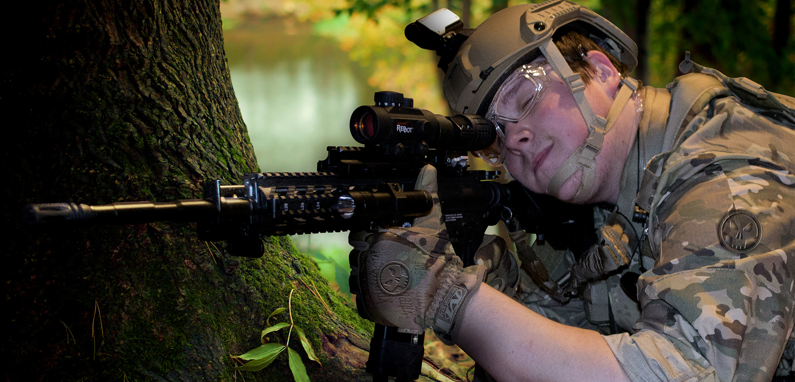 Cet adepte de fusils à air comprimé Airsoft se cherchait un visuel attrayant pour ses participations à des matchs. Il veut se donner une visibilité sur le terrain afin de se faire remarquer par les ligues. Toutefois, il sert également à provoquer chez ses adversaires une certaine terreur sur le champ de bataille. Son identification représente tous ces éléments pour faire de lui une personne qui est reconnue dans cet univers de guerre amicale.